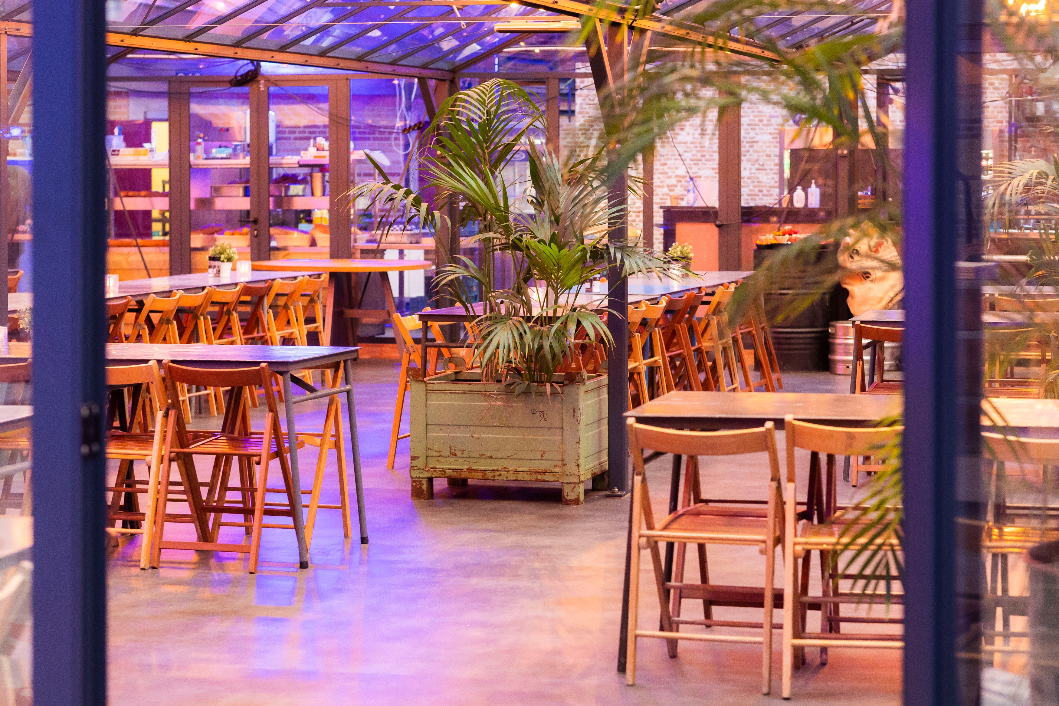 In het hart van Koepelgevangenis Arnhem vind je De Kas — een bijzondere, lichte ruimte met een unieke sfeer. De grote glazen wanden en groene details zorgen voor een open en ontspannen setting, perfect voor vergaderingen, borrels, lunches of diners met een groter gezelschap.